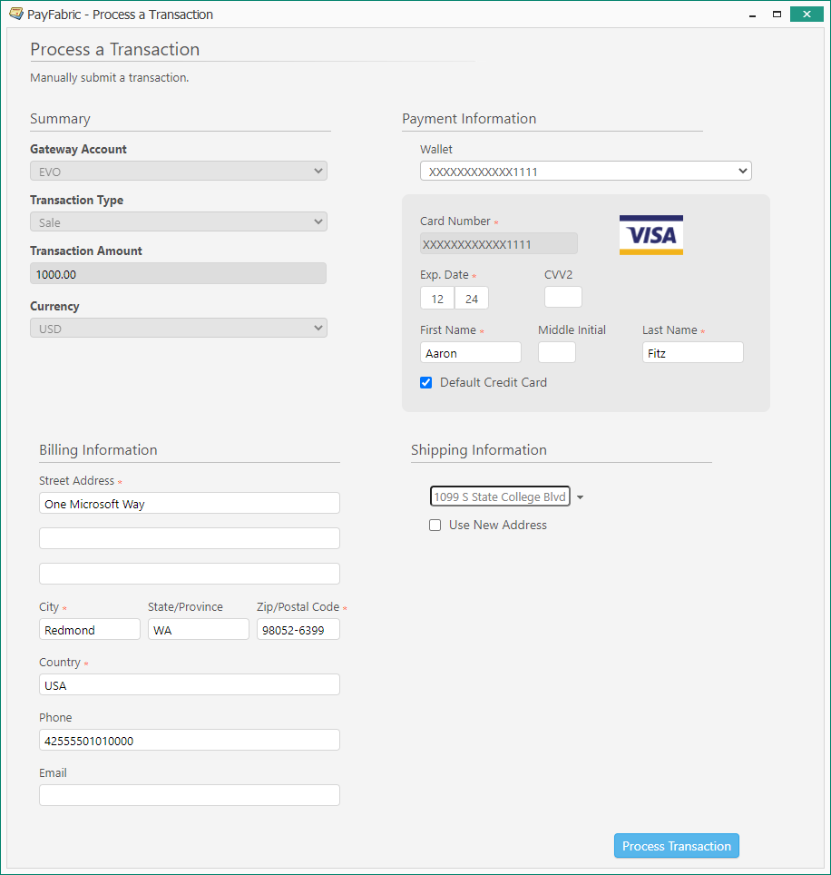 Additional information will be required on the payment transaction screen. Information marked with an asterisk * must be completed to process the transaction.