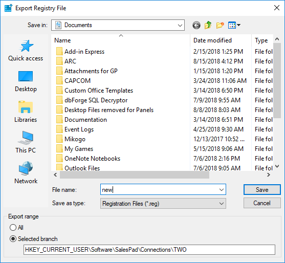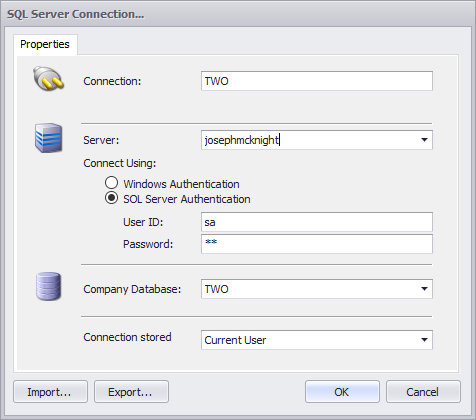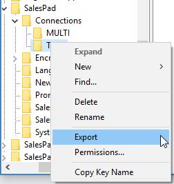 SalesPad® supports importing/exporting connections directly from the registry. These can easily be imported to and exported from the system registry editor.