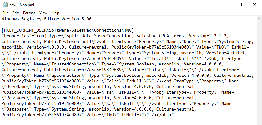- Double--click the registry file. The changed connections within SalesPad will now exist for all local users