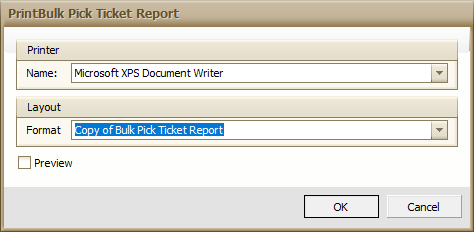 - Click OK. A preview will appear if selected, otherwise pick tickets will print to the selected Printer