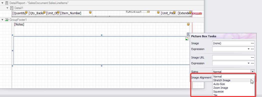 Before applying the script, you will need to add a picture box to the report. Open the report in Report Designer, and then click on the Picture Box option in the Standard Controls area.