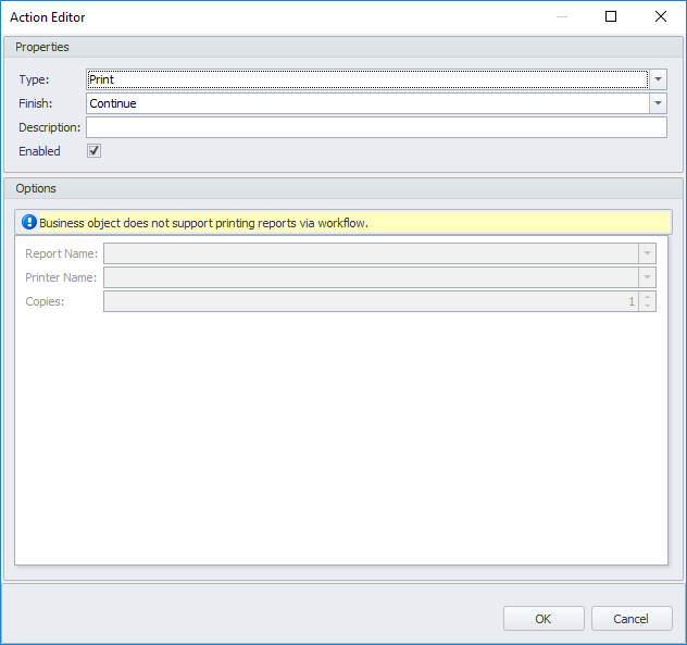 Note: SalesPad will let the user know if the business object does not support printing in workflow.
