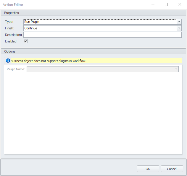 Note: SalesPad will let the user know if the business object does not support plugins in workflow.