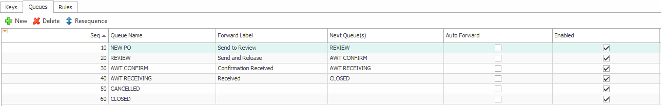 | Enabled | Enabled means the queue is active. If this is not checked, the queue is not apart of the workflow |