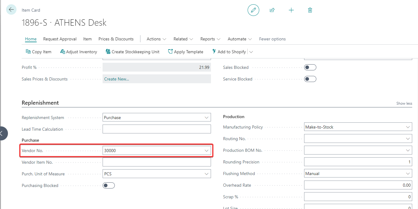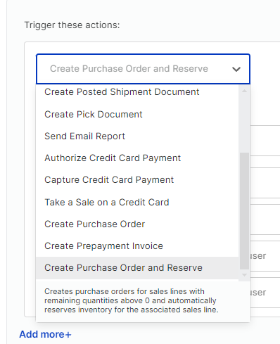 Once this action is configured in the workflow, any item with a default vendor set on the item card in Business Central and with any quantity remaining on the sales lines will be automatically purchased when the action is triggered.
