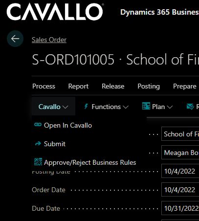 Several different tools are available in Business Central when it comes to utilizing Cavallo business rules.