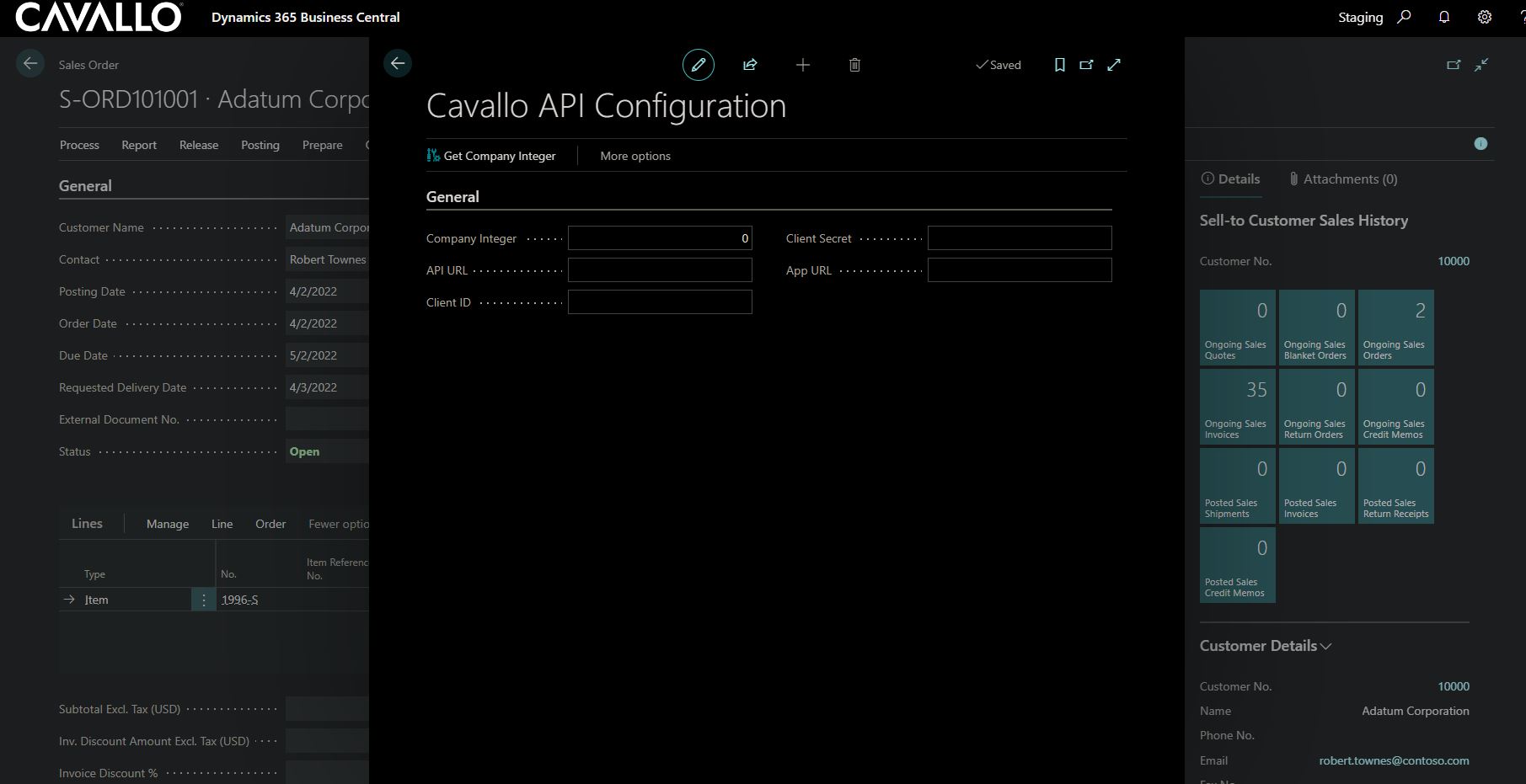 Ensure the Cavallo API is configured correctly within Business Central: Cavallo API