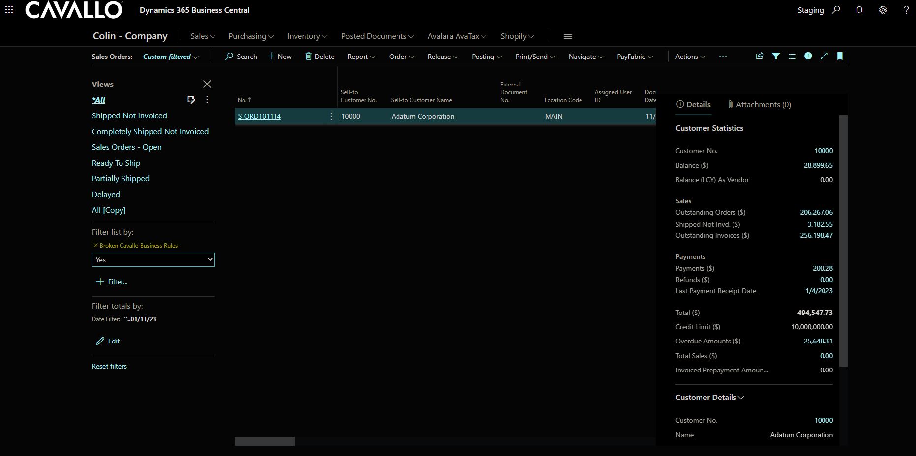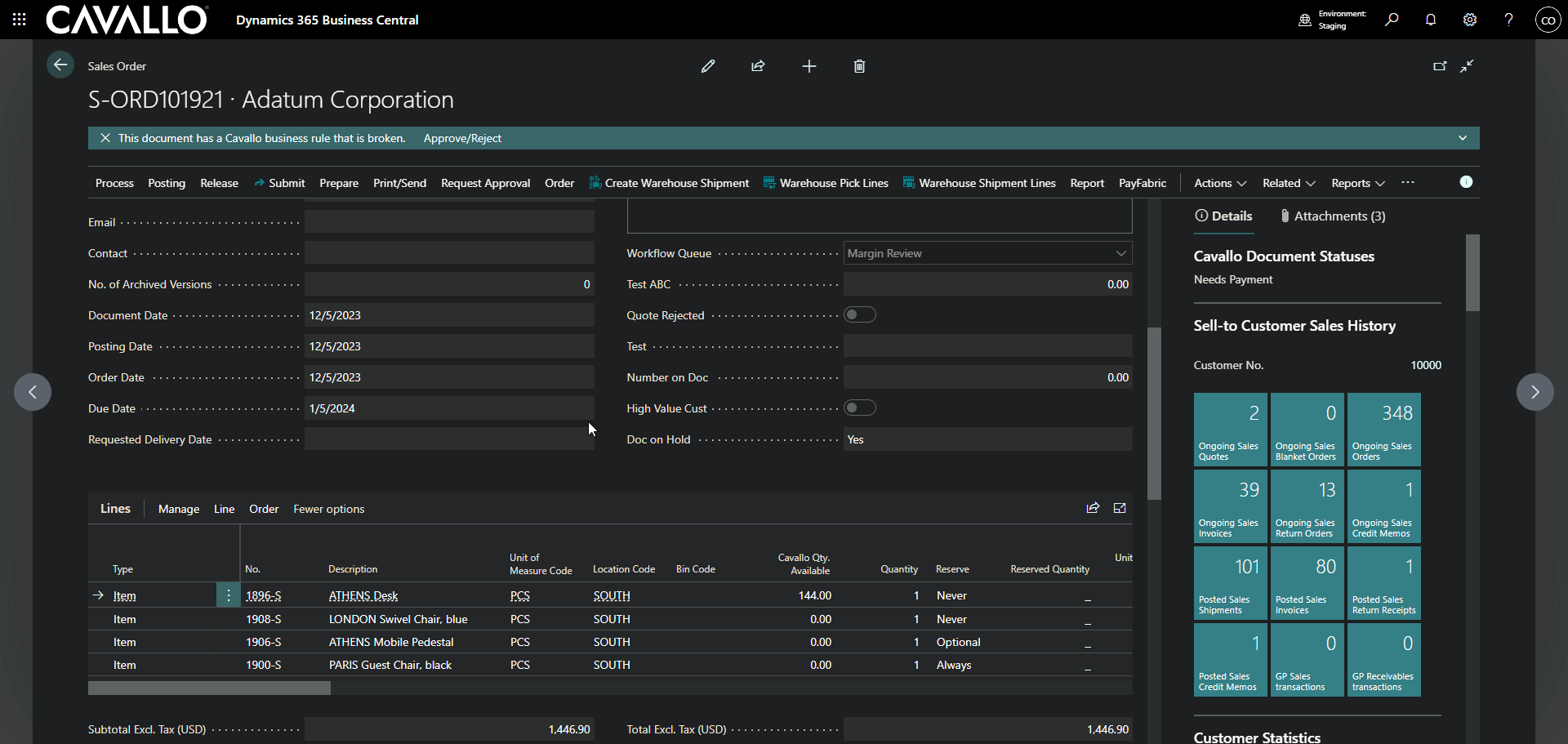 Once the Cavallo API is successfully set, the user will have the ability to execute their workflow and business rules, filter documents for broken rules and approve/reject those documents all within Business Central. Continue reading below to see examples of these features!
