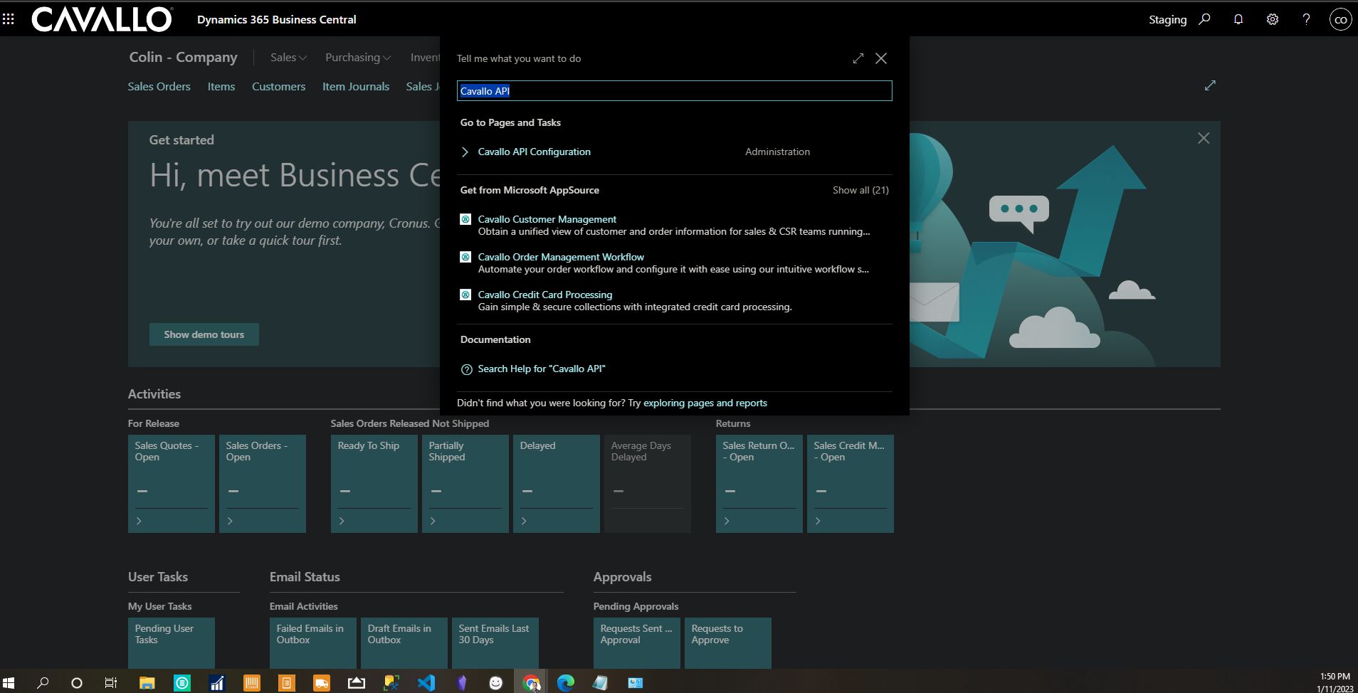 The first action that must be taken in order to use the Cavallo workflow in Business Central is that we need to set the Cavallo API setting within Business Central. In order to do this follow the below steps: