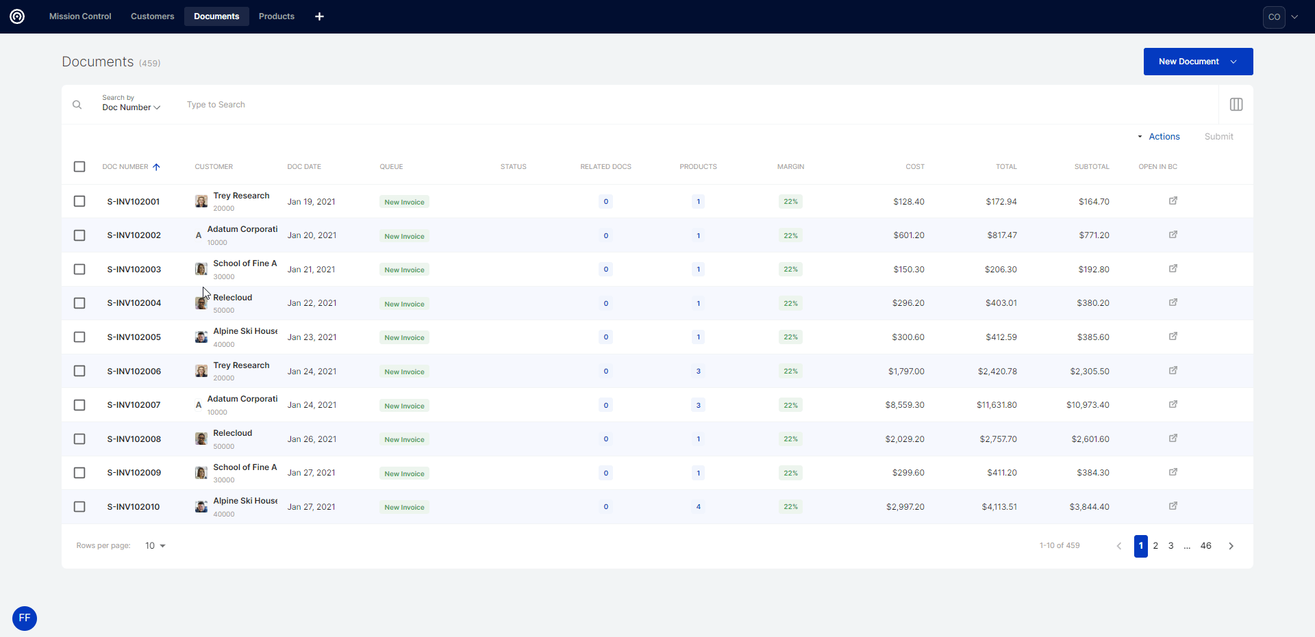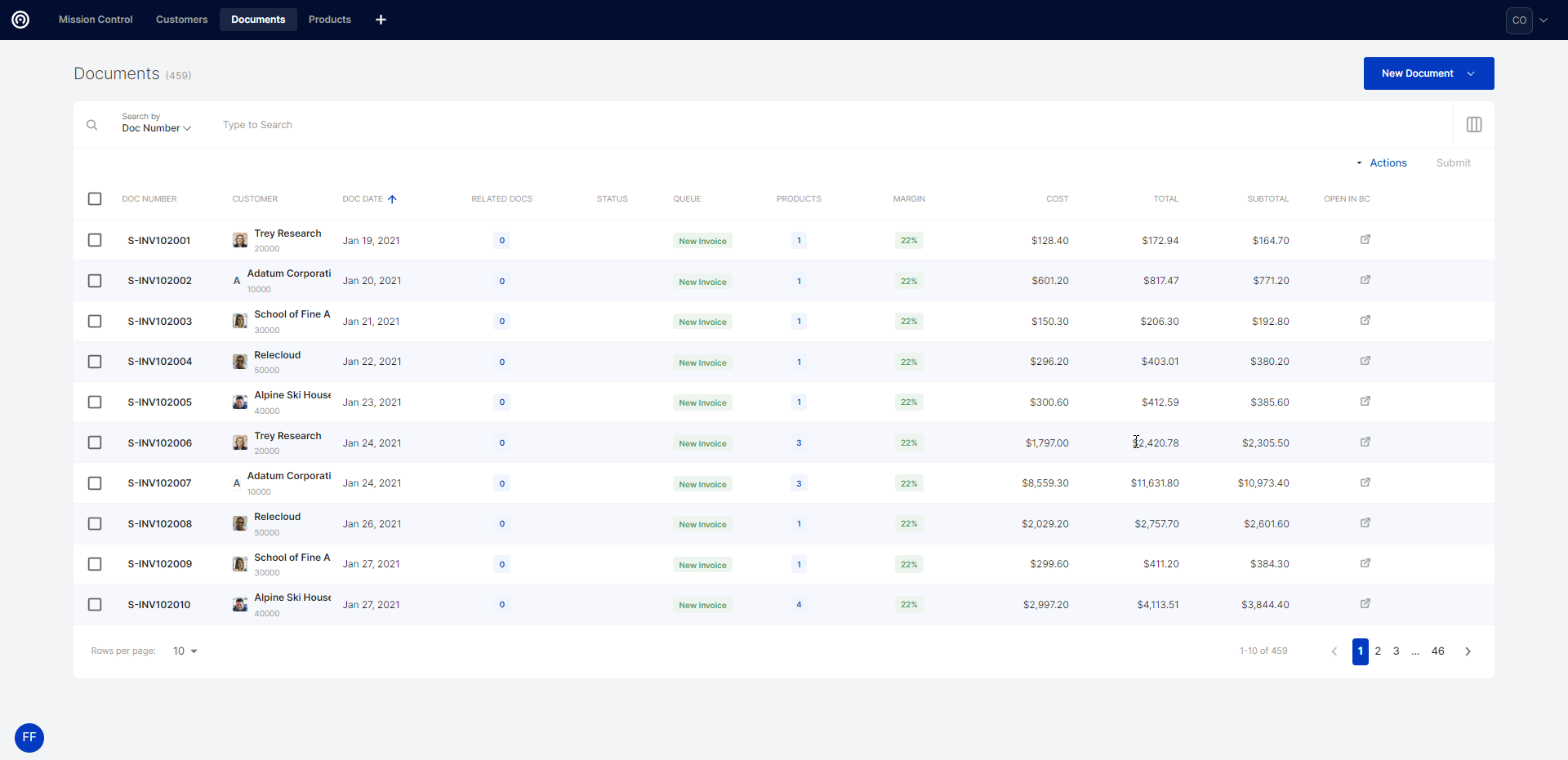 Cavallo's tables combine key components to enable users to take actions at any point in their process. Alongside an intuitive user interface, the tables include checkboxes for bulk actions, filtering including saved filters and an "Open in BC" column for quick navigation to the corresponding page in Business Central. Here's an overview of the table structure: