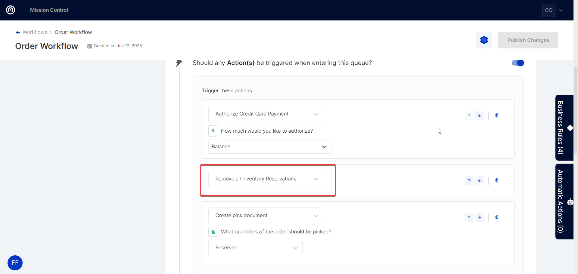To configure either reserving or canceling existing reservations in workflow, navigate to the workflow menu in the upper left corner of the screen: