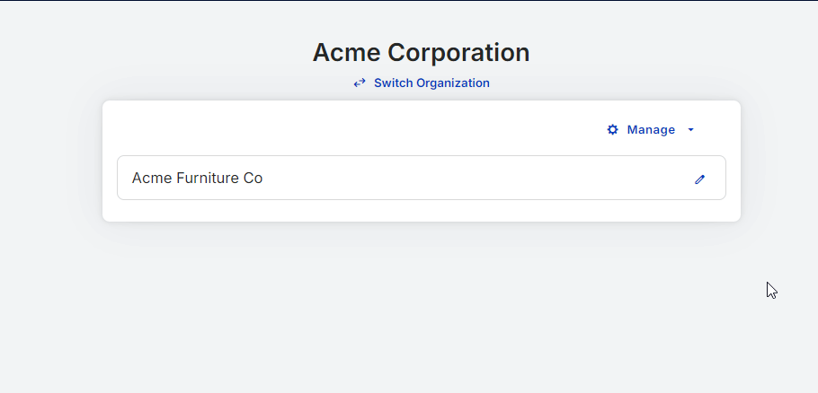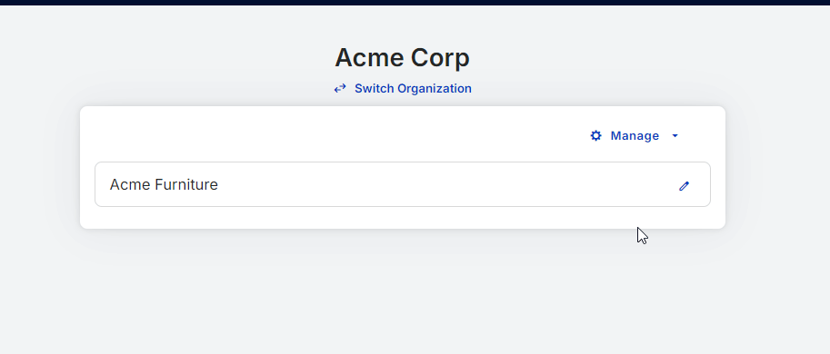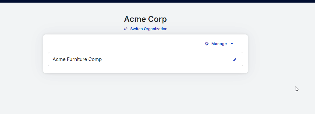 1. Click the "Manage" dropdown and select "Rename Organization"