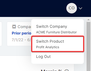 Note: Users can always manually navigate to the product select from within each application from the dropdowns located in the upper right hand corner.
