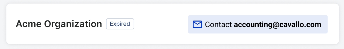 Expired: This status indicates that the selected organization is outside of their payment terms with Cavallo. Contact accounting@cavallo.com for assistance.