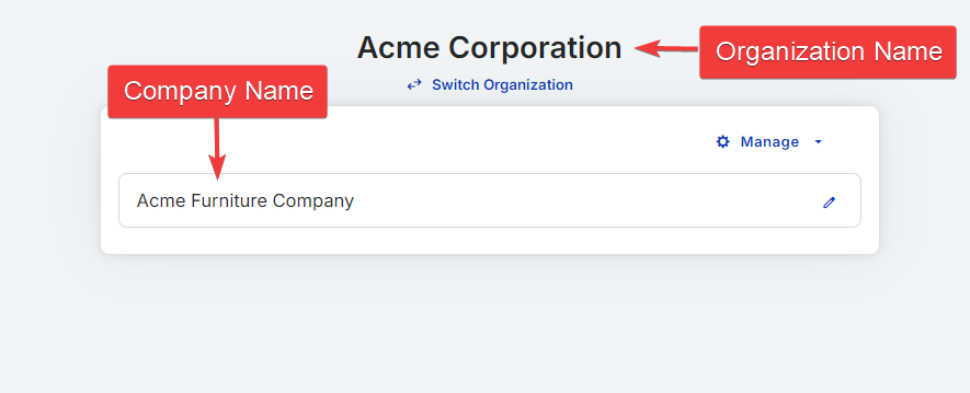 As an Admin or Owner role, the ability to edit the company or organization name is available as an option. Please note these changes are only made to the display name and can be editing as many times as needed.