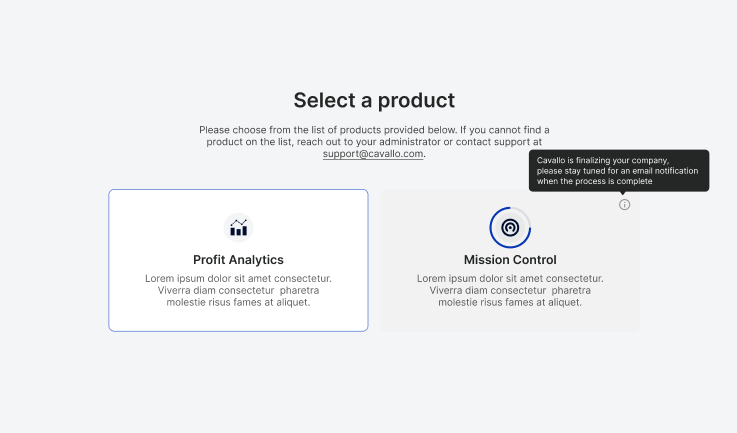 1. If a user has more than one Cavallo product, users will land on the company select page