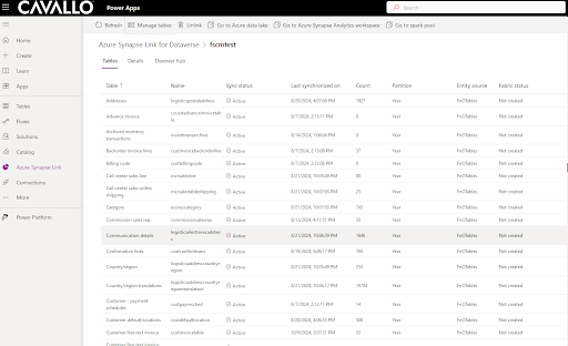 After the tables are added, they will be visible within Azure Synapse Link. Please note that there are 2 statuses that can appear in the Synapse Link "Status" column. This column will always show "error" at first, but as tables are added this will change to "active". This process can take upto several hours.