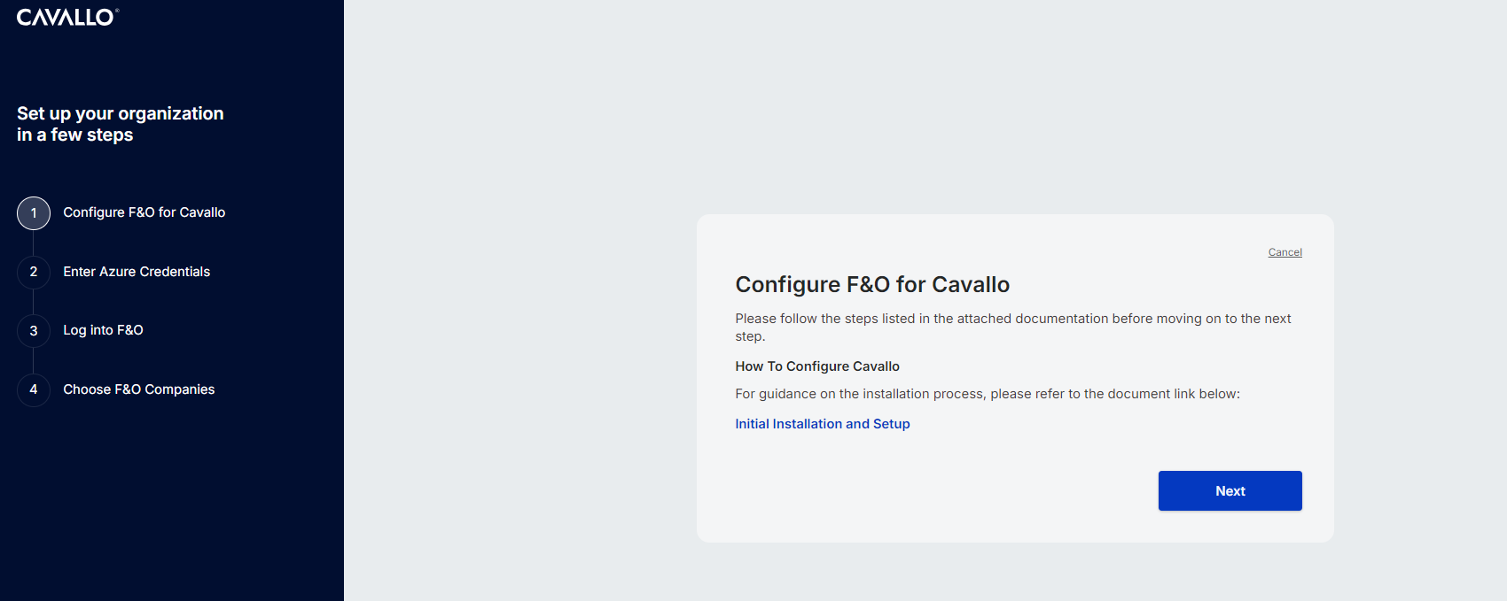 In the initial step of the onboarding flow, users are provided with information on how to complete the process, along with a link to this document. Please note that the three sections outlined above are prerequisites for successfully completing the Cavallo onboarding process.